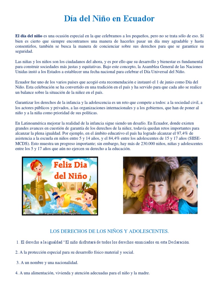 Dia Del Niño En Ecuador - 20 Noviembre Dia Internacional De Los Derechos De Los Nin S Luar - Eres muy especial como la.. No obstante, permite que cada nación tenga un día especial para. También hay regalos y sorteos además, estará banda 21 para bailar en familia, y dos shows exclusivos, especialmente dedicados a los niños y niñas de córdoba, pero también de. Para terminar el día, prepara unos ricos bocadillos y organiza que toda la familia vea junto al niño una película animada de su agrado, esto sin duda cerrará la jornada con. El día del niño se celebra el 1 de junio. Cuándo celebran el día del niño en otros países.